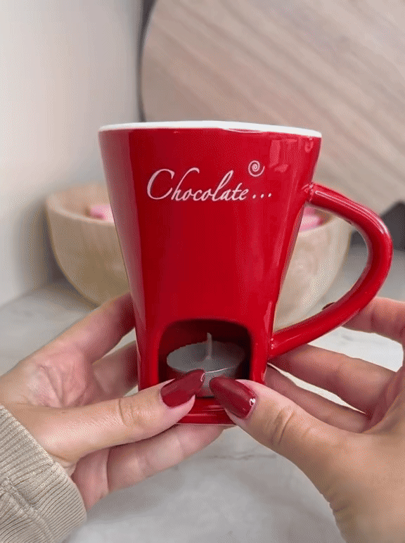 Allume la petite bougie intégrée, glisse quelques carrés de chocolat dans ton mug, et regarde-les fondre lentement pour créer le chocolat chaud le plus onctueux que tu aies jamais goûté 🤎
